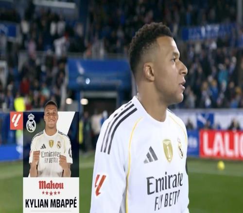 西甲第16轮,皇家马德里客场2-1击败阿拉维斯,此役为皇马首开记录的姆巴佩当选西甲官方全场最佳球员。此役客场对阵阿拉维斯,首发出战的姆巴佩在比赛第24分钟左路内切突破后兜射